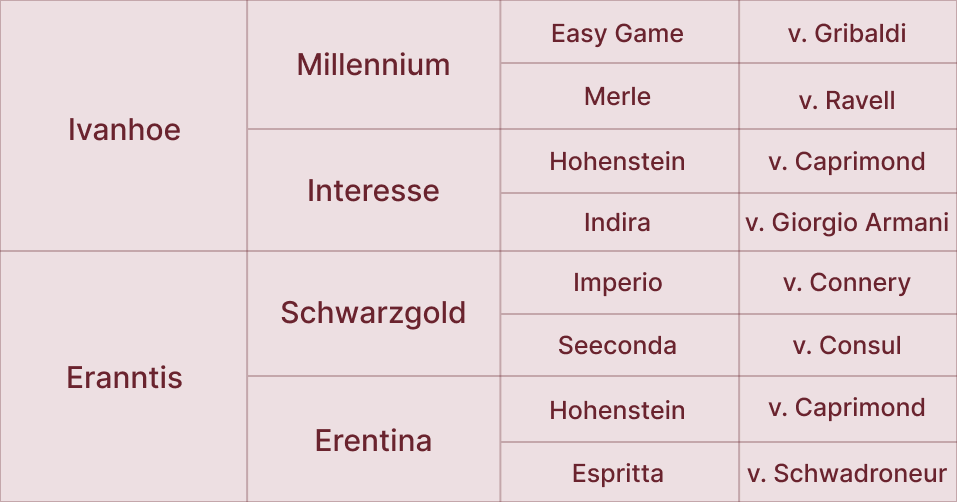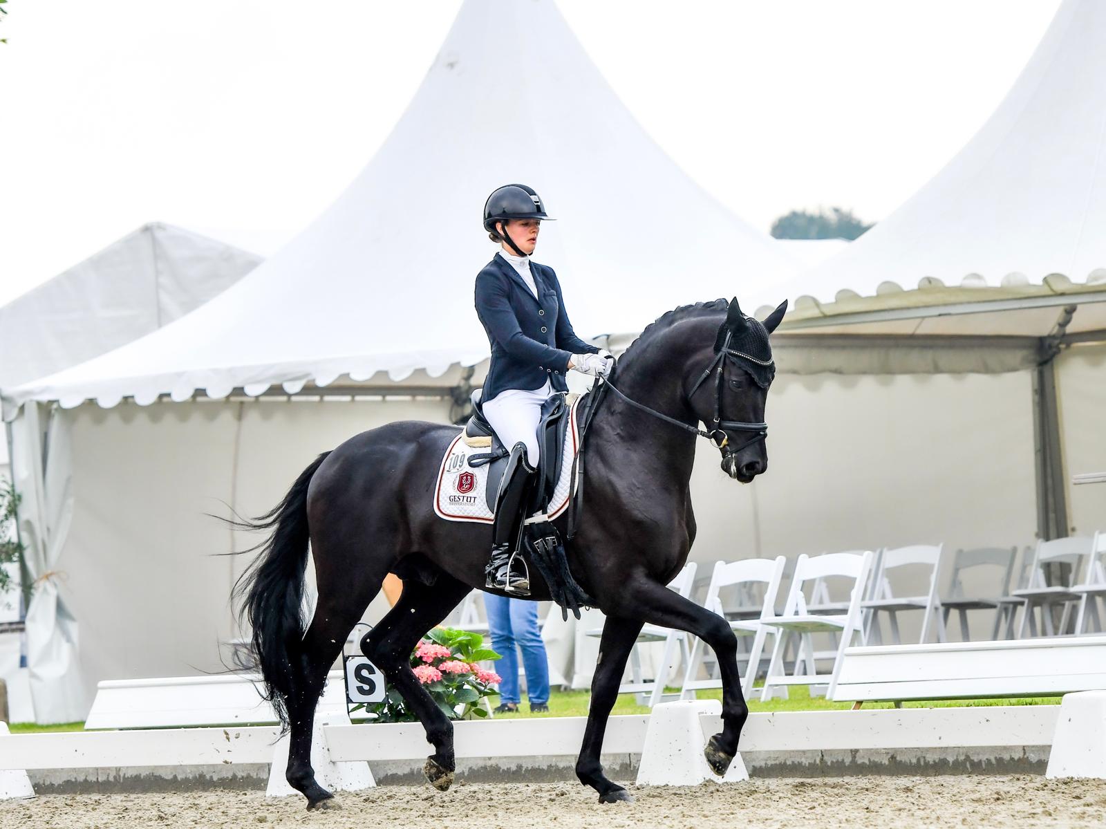 2023 mehrfach platziert in Reitpferdeprüfungen, u.a. 2. Platz im Trakehner Championat für dreijährige Hengste.