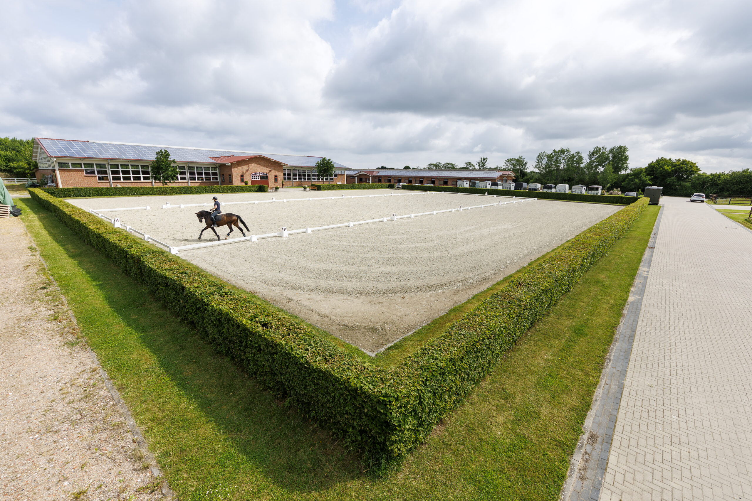 Der 50×60 Meter große Außenplatz lädt zum Gallopieren ein und im Sommer wird ein Dressurviereck von 20×60 Metern aufgebaut.