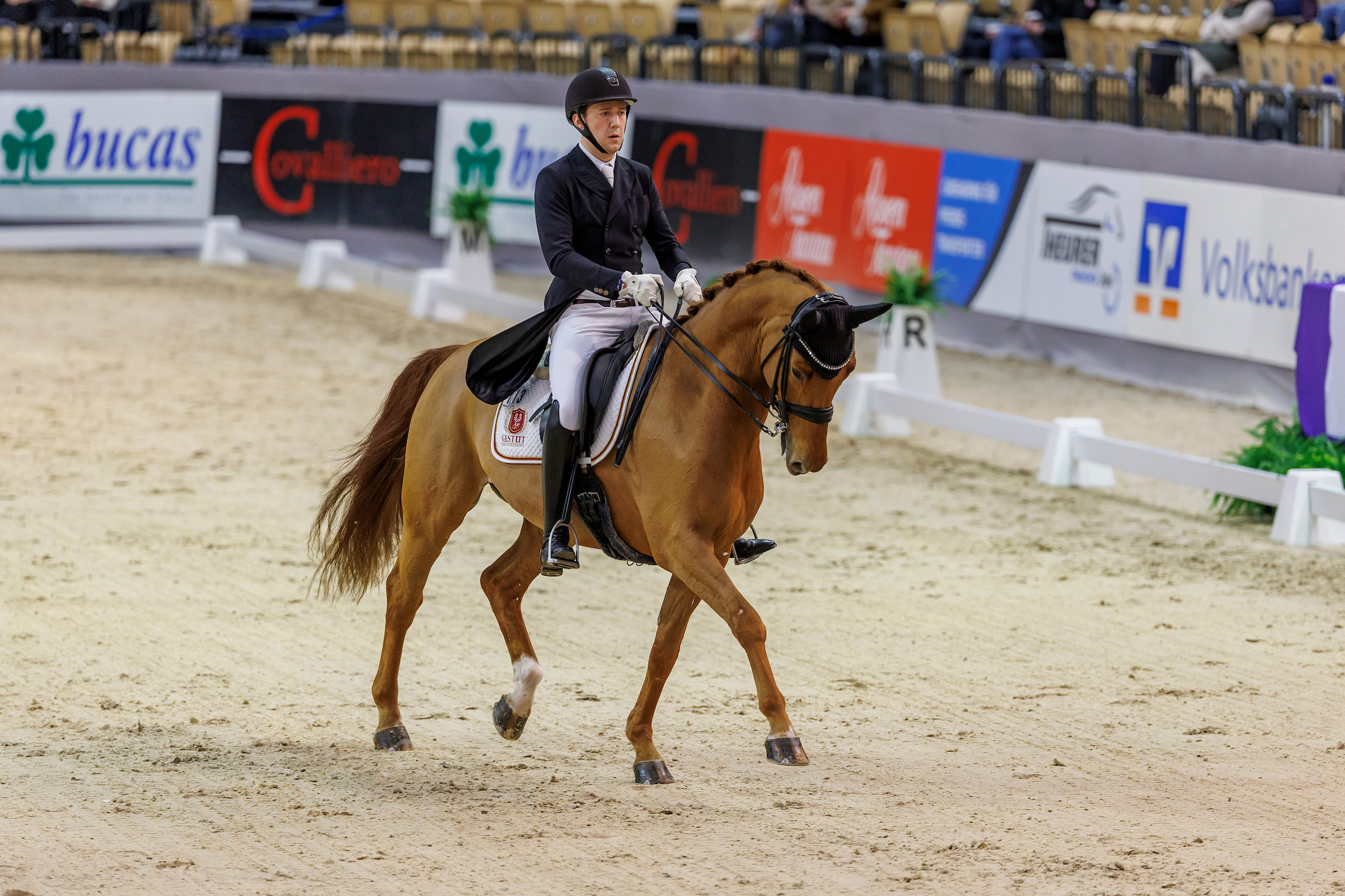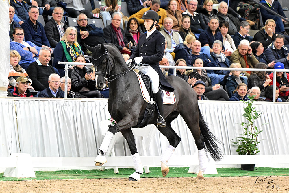 Der von Moritz in die Dressurklasse S geführte Da Vinci Code (v. Dancier) bei einer Schaupräsentation in Verden.