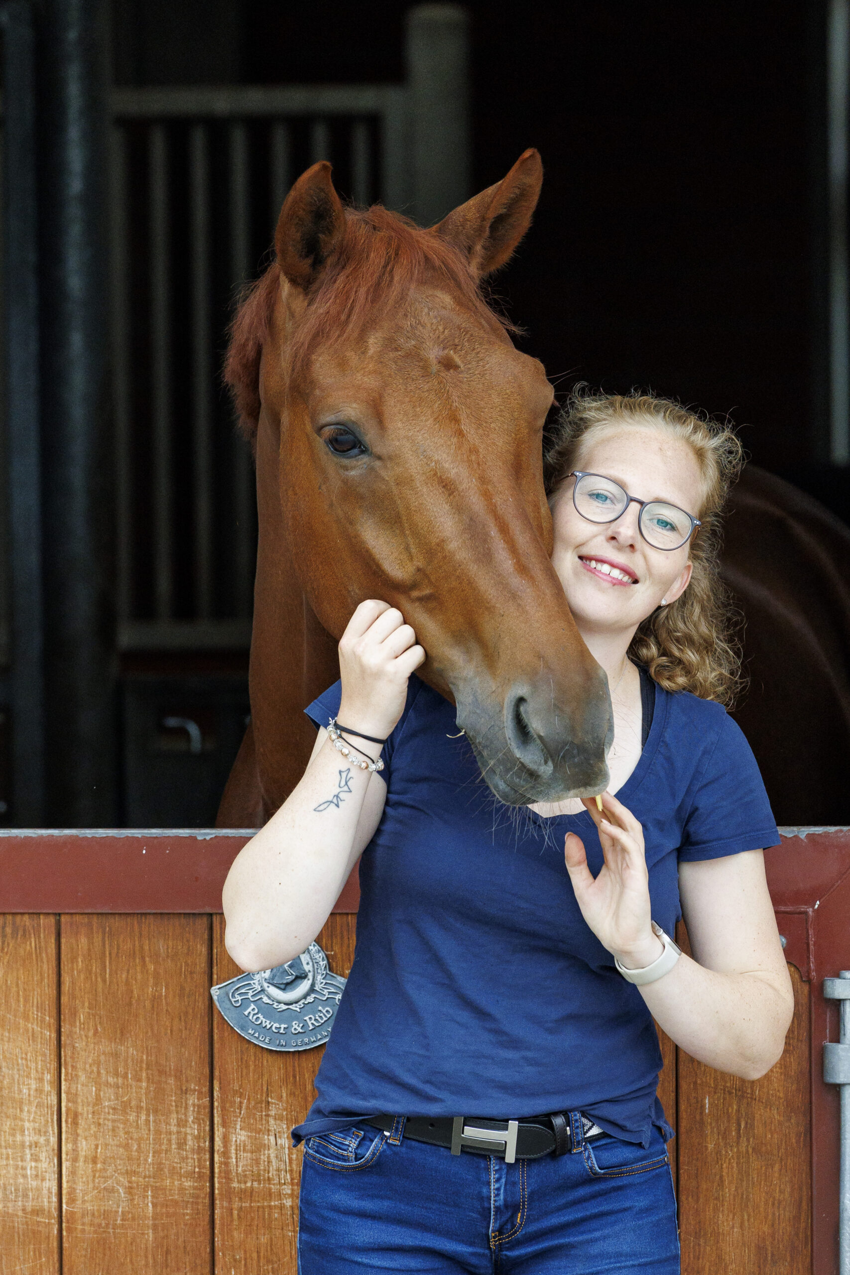 lernte zeitgleich mit Moritz im Gestüt Bonhomme den Beruf der Pferdewirtin mit Schwerpunkt Zucht. Nach erfolgreich abgeschlossener Ausbildung blieb sie zunächst auf dem Gestüt Bonhomme, und wechselte später nach Dänemark in den Zucht-, Ausbildungs- und Vermarktungsstall von Andreas Helgstrand. Dort konnte sie die Longenarbeit mit jungen Pferden weiter perfektionieren. Zu Beginn des Jahres 2020 kam Julia auf das Gestüt Brodersdorf und arbeitet seitdem mit Moritz wieder zusammen. Die optimale Pflege und das perfekte Herausbringen der Pferde stehen im Mittelpunkt ihrer Verantwortung. Sie macht auch im Sattel eine gute Figur und die Arbeit an der Doppellonge (Bodenarbeit am langen Zügel) ist eine ihrer besonderen Vorlieben.